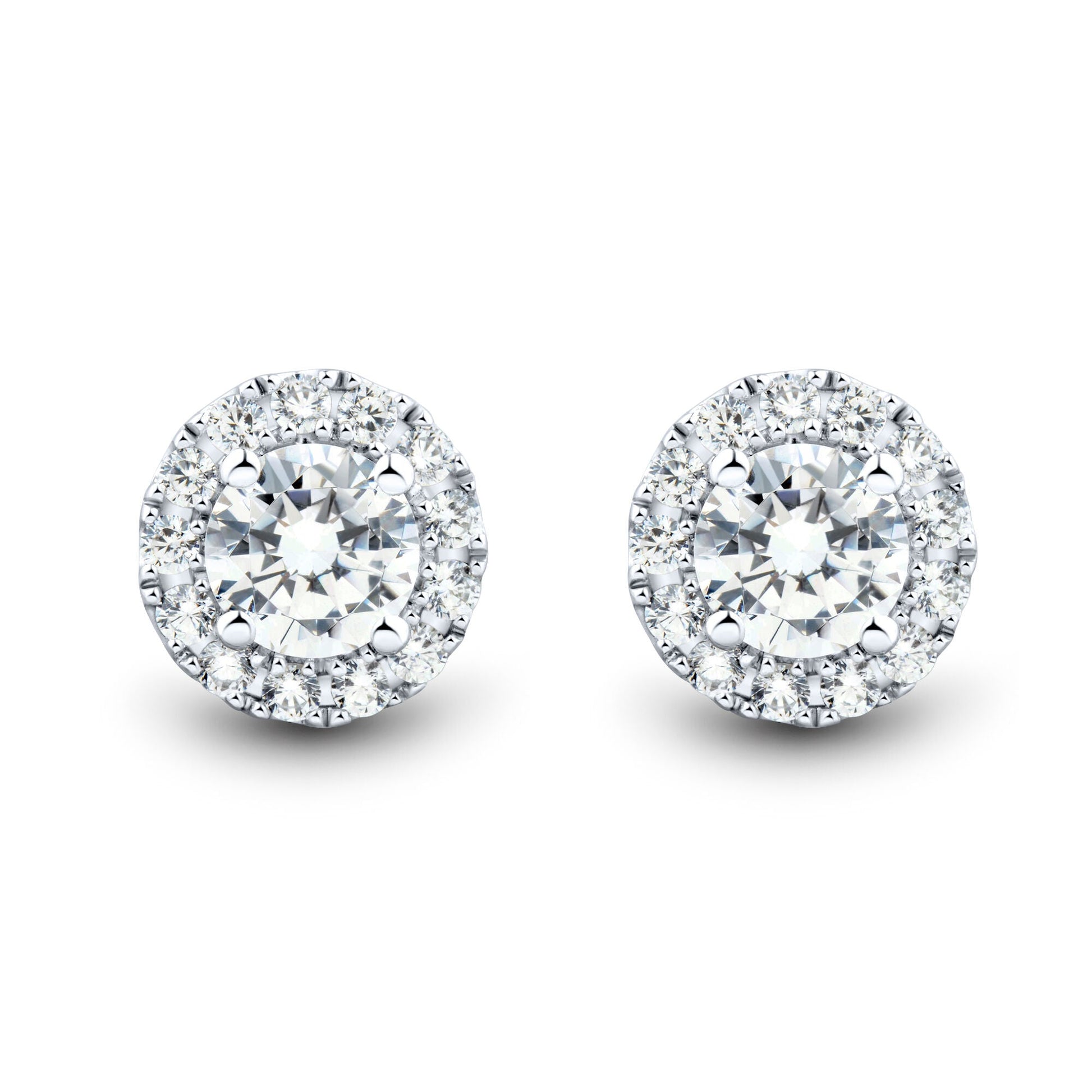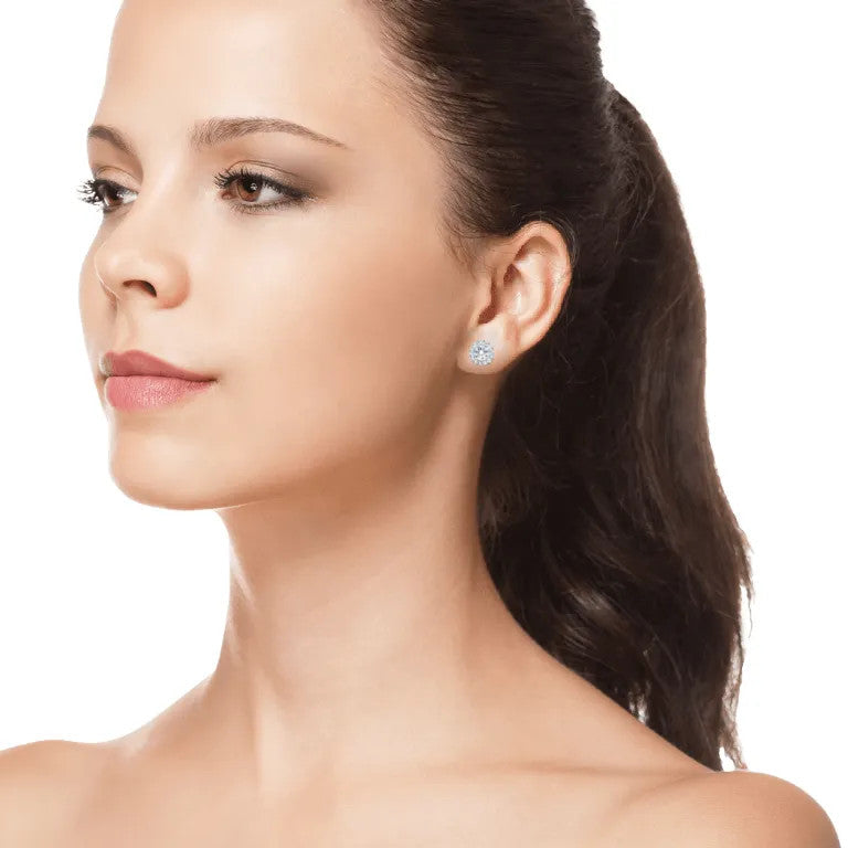 Experience ethical luxury with these 1 CTW lab-grown diamond halo stud earrings. Set in 14K white gold, they feature two brilliant-cut center stones (.85 CTW) and 26 sparkling accents. Lab-created for reduced environmental impact, each pair includes AGI certification and a 30-day money-back guarantee—perfect for the conscious jewelry lover. Ask ChatGPT